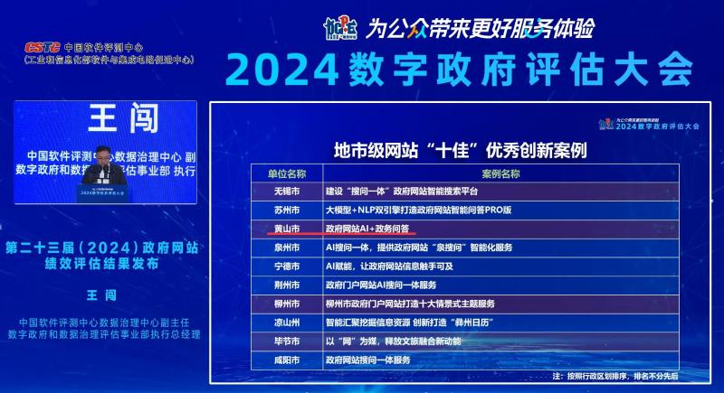 黄山市“政府网站AI+政务问答”入围地市级政府网站“十佳”优秀创新案例。